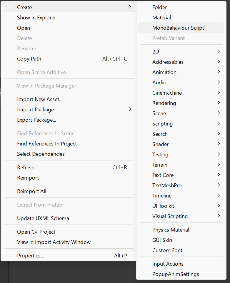 Unity 6000 °Ê¹ß¤Ç¤Ï¡¢Create => MonoBehaviour Script ¤òÁªÂò¤¹¤ë¤«¡¢Create => Scripting => MonoBehaviour Script ¤òÁªÂò¤·¤Þ¤¹¡£